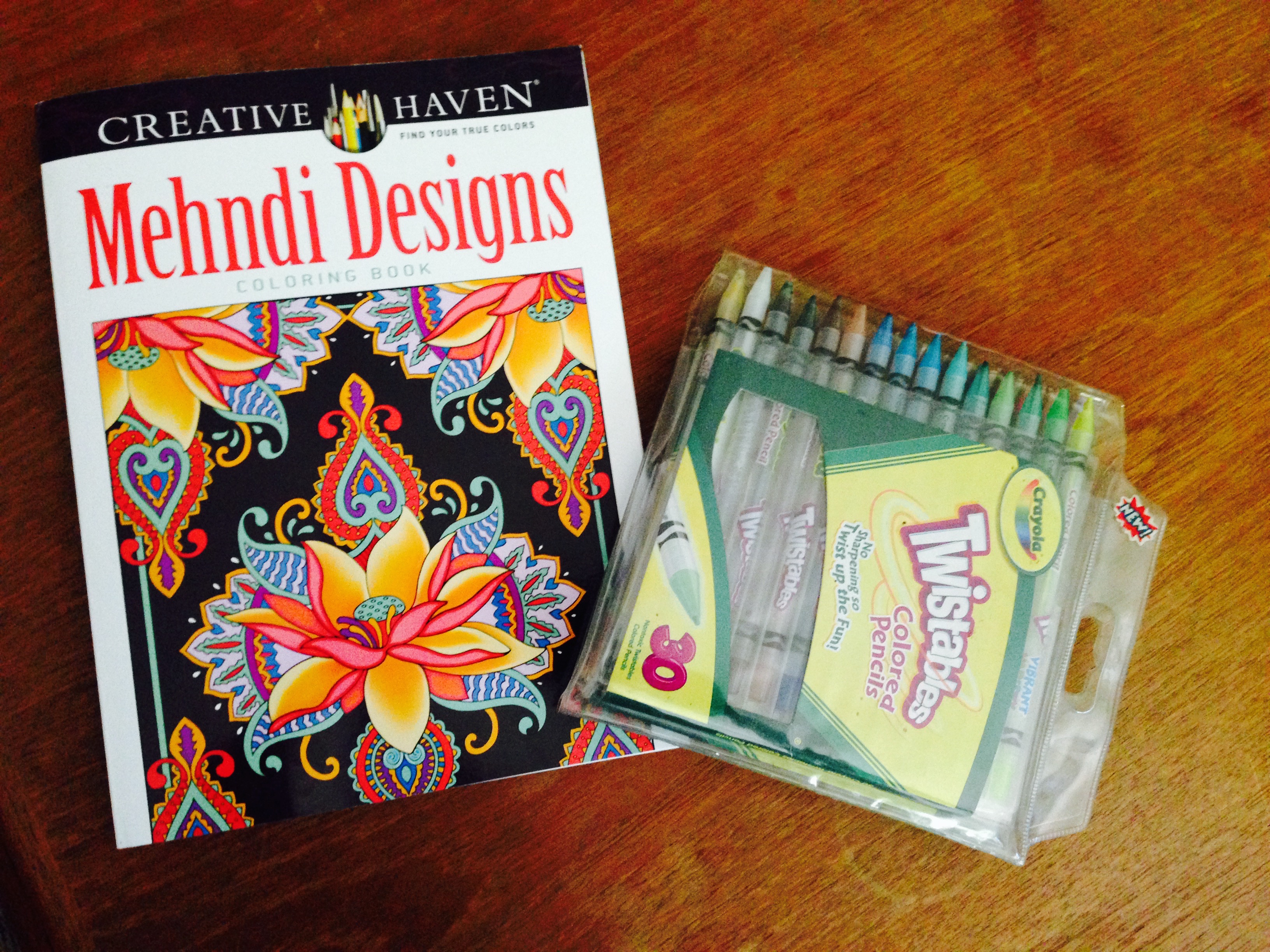- COLORING! – yes, I still love coloring. I have coloring books left over from when my son was young and some more mature design books I like to color in! Sometimes drawing your own designs is even better!!